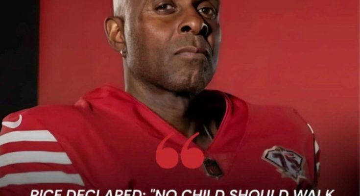 Rice, who spent years dazzling defenses with precise routes and hands of steel, walked into an Oakland elementary school not as the greatest wide receiver of all time, but as a father, neighbor, and citizen with a responsibility he could no longer ignore.