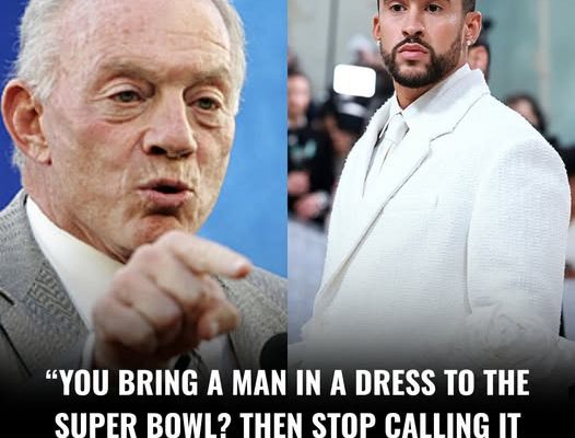 Dallas Cowboys owner Jerry Jones ignited a cultural firestorm after delivering a blistering rebuke of the idea that Bad Bunny could headline a future Super Bowl halftime show, casting the proposal as an affront to the values he believes the event should represent. In remarks that ricocheted through the sports and entertainment worlds, Jones rejected what he framed as sensational spectacle over tradition and said the league risks losing its identity if it chases controversy for attention. “You bring a man in a dress to the Super Bowl? Then stop calling it football — call it a circus,” he said, drawing swift reactions from fans, players, and industry insiders across the country.
