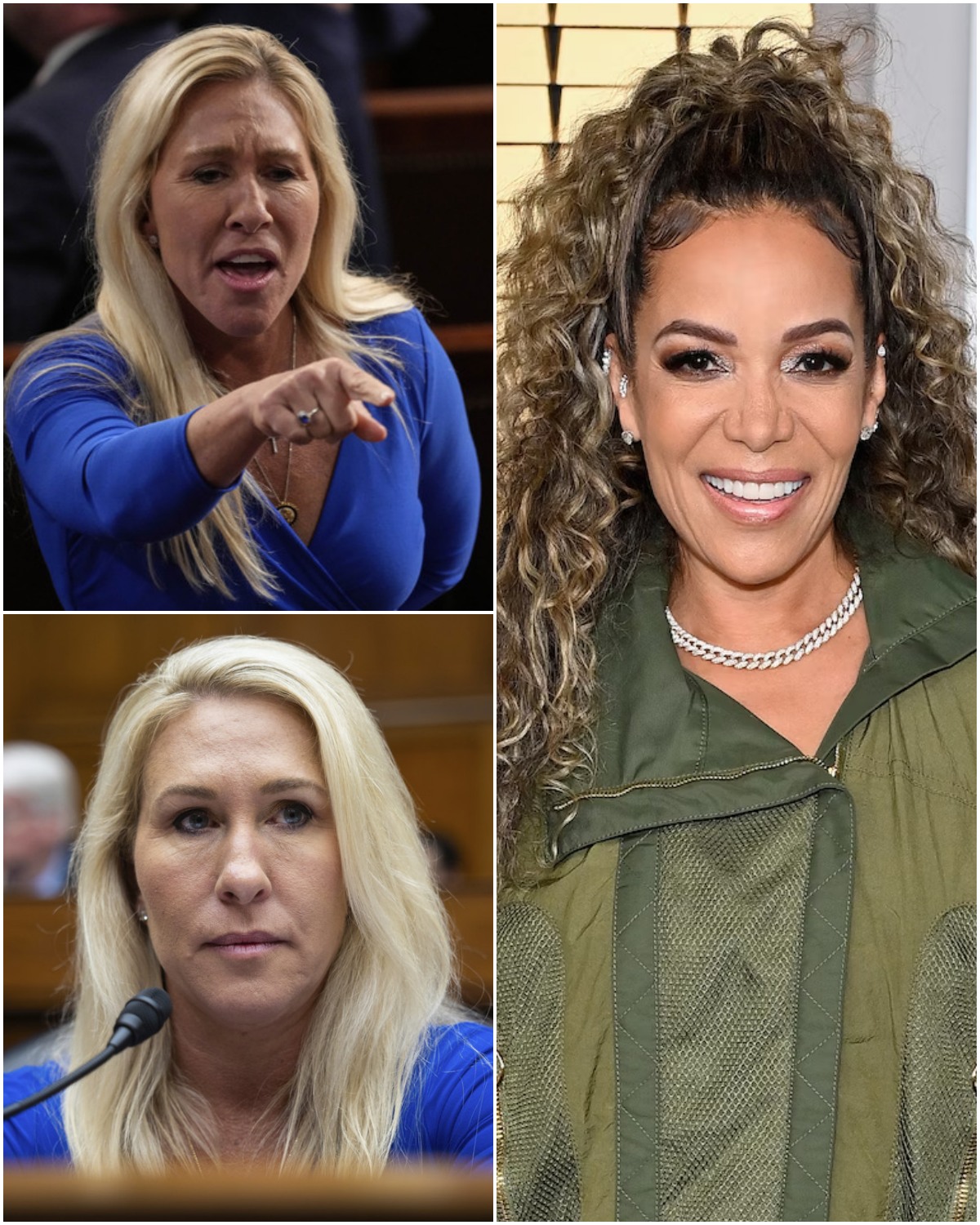 Opposite them stands Marjorie Taylor Greene — congresswoman, firebrand, meme queen, and one of the most controversial figures in modern American politics.