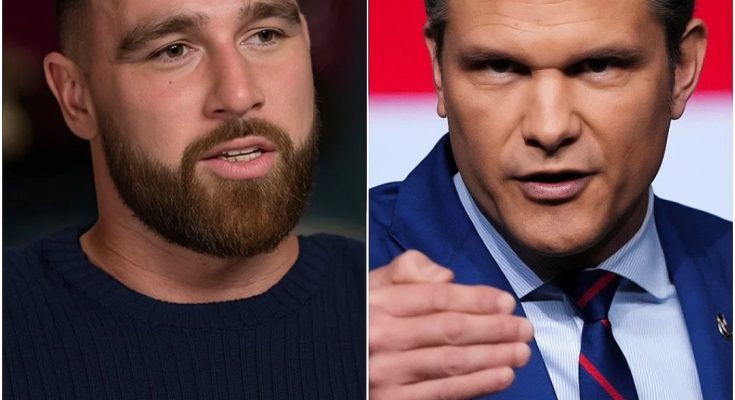 The tension began when Pete Hegseth, who had been smiling through the pre-show chatter, suddenly shifted his tone the moment the cameras went live. It wasn’t subtle. It wasn’t accidental. It was a pivot so sharp it felt like watching a car drift across a highway with no warning. In the middle of what was supposed to be a harmless question about Kelce’s off-season youth programs, Hegseth leaned back, crossed his arms, and delivered a line that detonated instantly across social media.