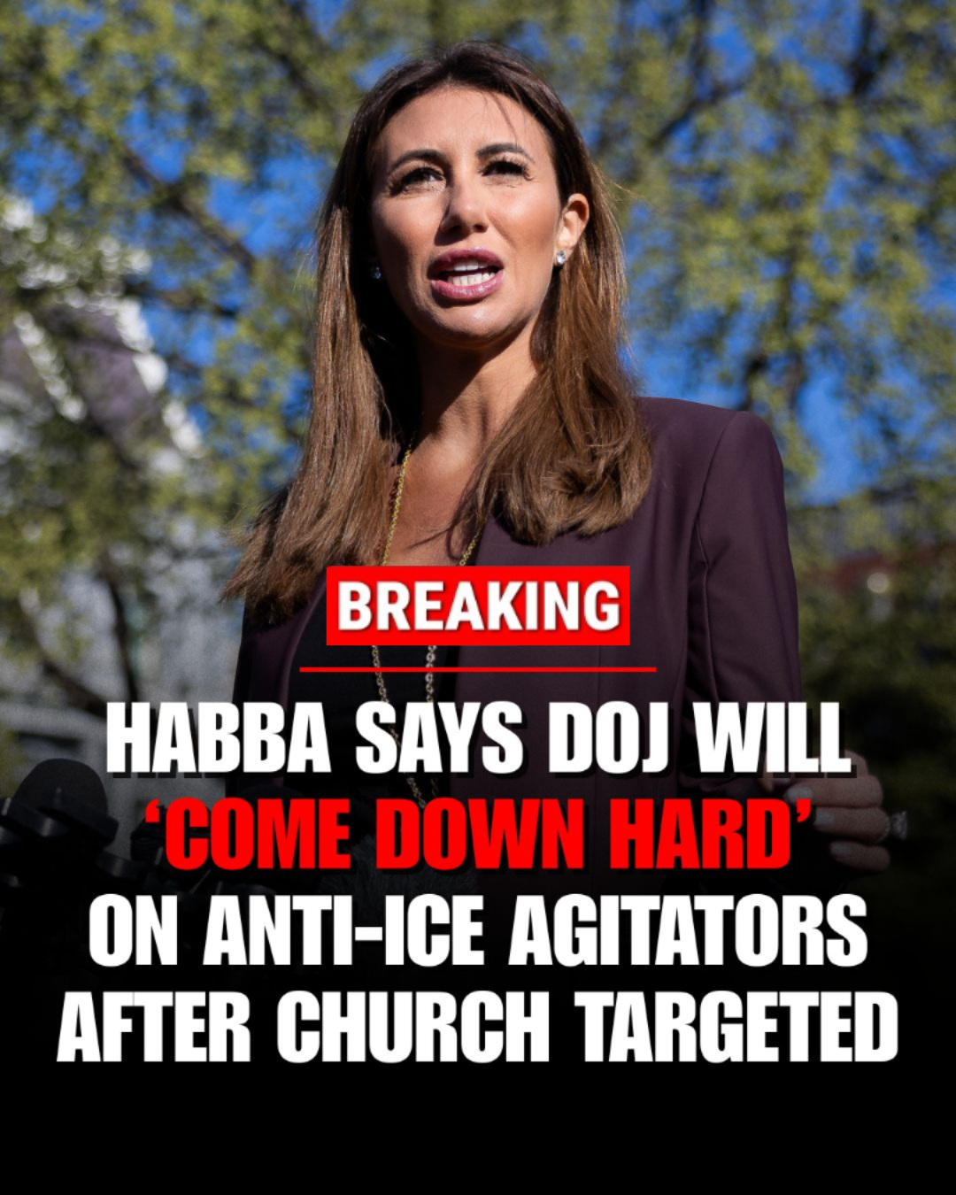 Habba said Attorney General Pam Bondi would “come down hard on anybody who tries to impede or intimidate somebody in a place of worship or a police officer or an ICE officer.”