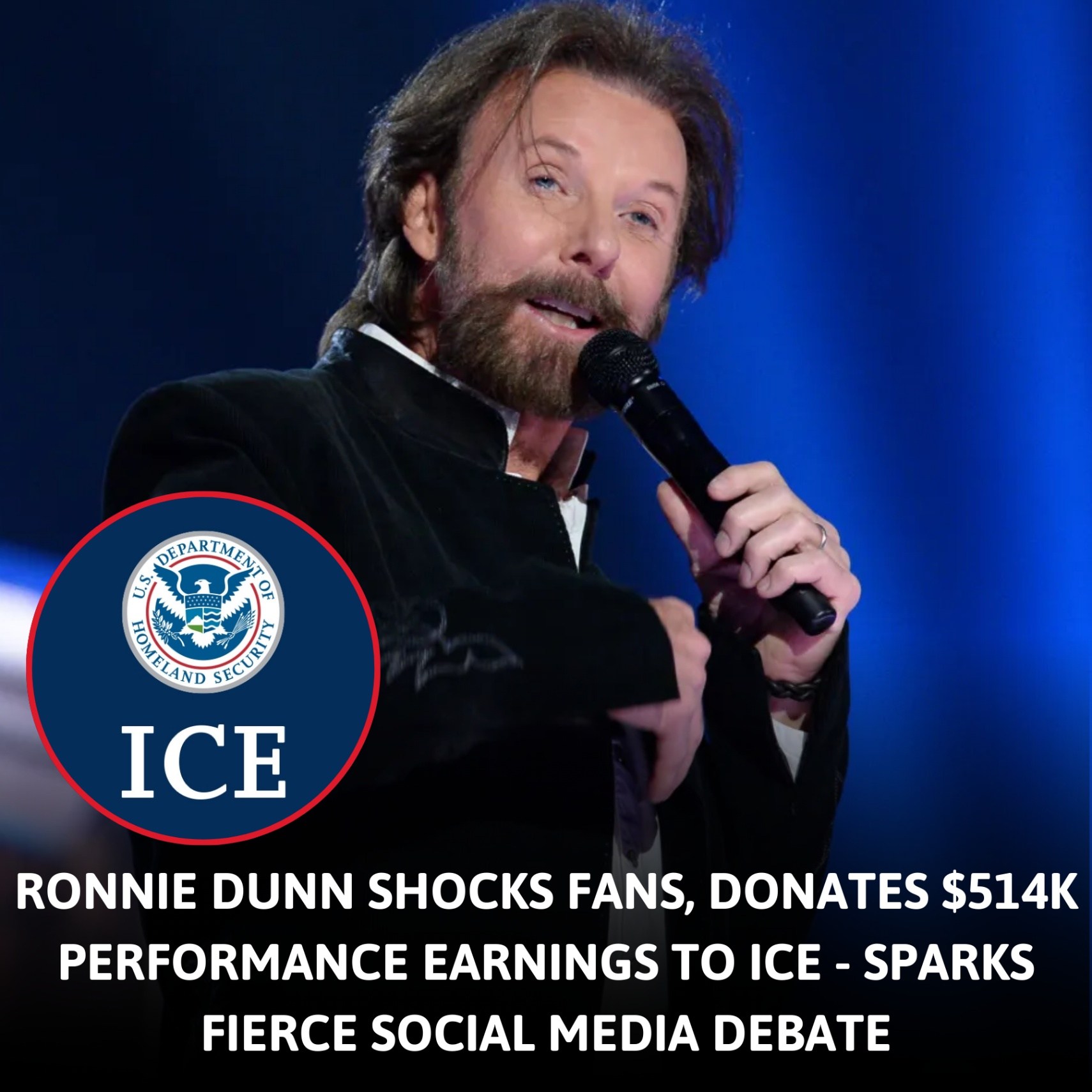 May be an image of text that says 'DEPARTMEN .$ PEPARTMENO OF KERSEN DRCIAO ICE RONNIE DUNN SHOCKS FANS, DONATES $514K PERFORMANCE EARNINGS TO ICE SPARKS FIERCE SOCIAL MEDIA DEBATE'