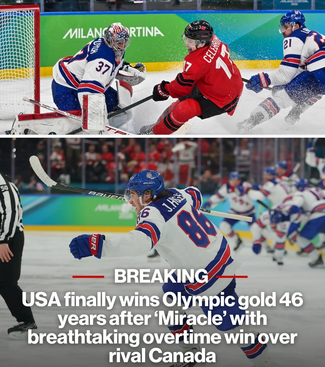 At 1:41 of overtime, Zach Werenski fed Jack Hughes on the break, and Hughes authored a moment that will live on in American sports lore forever, lashing a shot past Jordan Binnington for the golden goal.