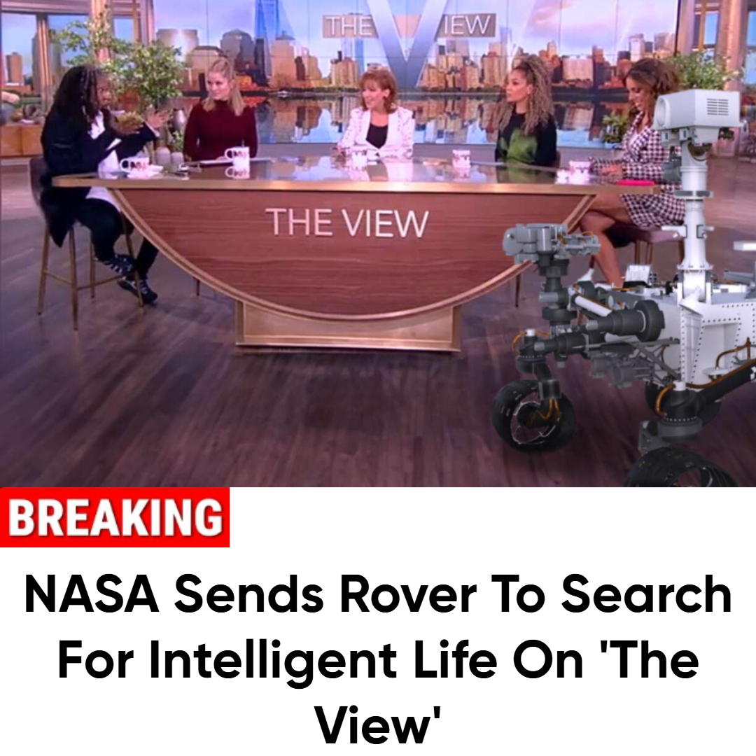 May be an image of text that says 'THE IEW THE THEVIEW VIEW BREAKING NASA Sends Rover To Search For Intelligent Life On 'The View''